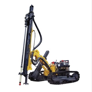 “开山”牌露天潜孔钻车系列产品是在引进国外先进技术的基础上,按照中国露天矿山的特点而精心设计的新型自行式凿岩设备,广泛适用于采石场、铁路、公路、水电、露天矿山以及建筑等工程的中深岩接杆凿岩作业。高风压露天潜孔钻机,全气动工作,多角度凿岩,爬坡能力强,自动找平、行走,回转速度快,机动灵活。钻孔速度是一般低风压潜孔钻机的8—12倍,在硬度为f=6—20的岩石上,每小时钻孔深度15—25米。尤其适合:崎岖工地、频繁移机、多角度作业、无供电条件的矿山。